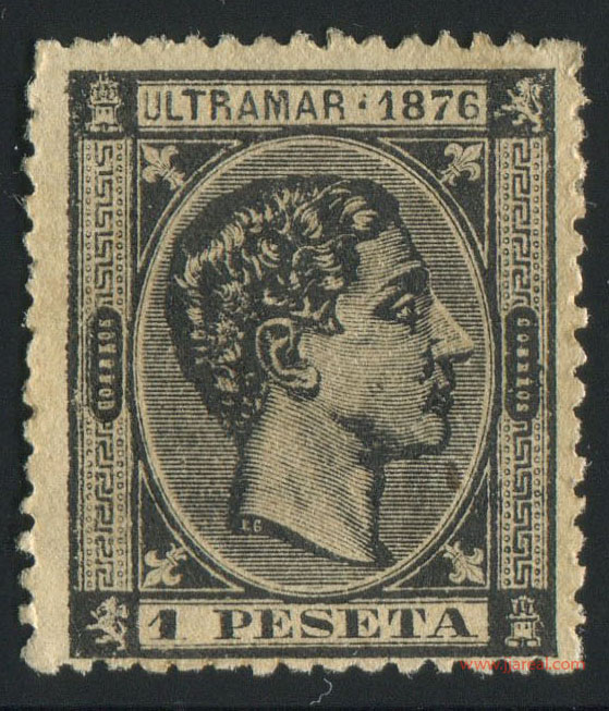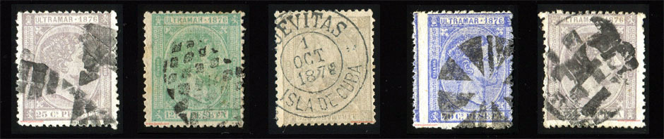 Las emisiones empleadas en Cuba entre 1876 y 1879 presentan un diseño muy similar al empleado en España en la emisión de 1875. Se trata del mismo busto del rey Alfonso XII, mirando a la derecha, sobre un óvalo de rayas horizontales. Cabe mencionar que la emisión de 1876 se empleó indistintamente en Cuba y Puerto Rico; y es por ello que en su cartucho superior se indica ULTRAMAR 1876 en lugar de CUBA y el año para las sucesivas emisiones.
