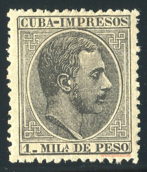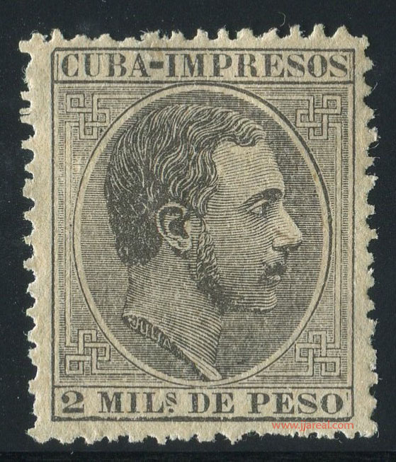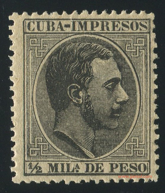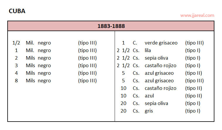 Entre los años 1883 y 1888 se fueron poniendo en circulación distintos valores con la efigie del rey Alfonso XII. En general se mantuvo el diseño con relación a la emisión del año 1882. Se presenta un cuadro de forma rectangular con dos cartuchos en su parte superior e inferior. En la parte central se mantiene la efigie del rey Alfonso XII mirando a la derecha dentro de un óvalo (se distinguen tres tipos diferentes : I, II y III según los valores y año de emisión). El cartucho superior presenta el texto CUBA entre dos adornos para los sellos de Centavos de peso y el texto CUBA-IMPRESOS para los sellos con valores en Milésimas de peso. El cartucho inferior indica el valor del sello en Centavos o Milésimas de peso.