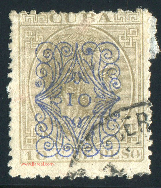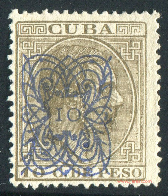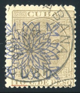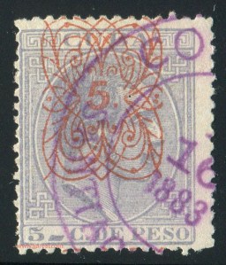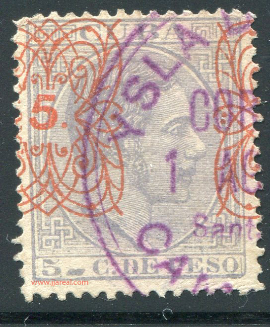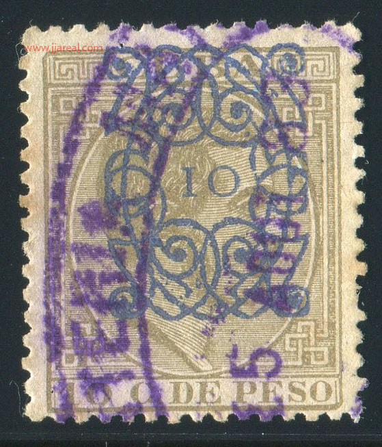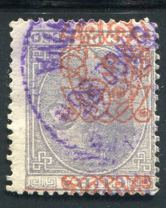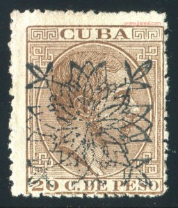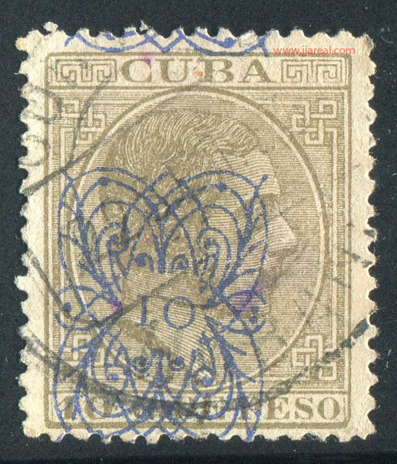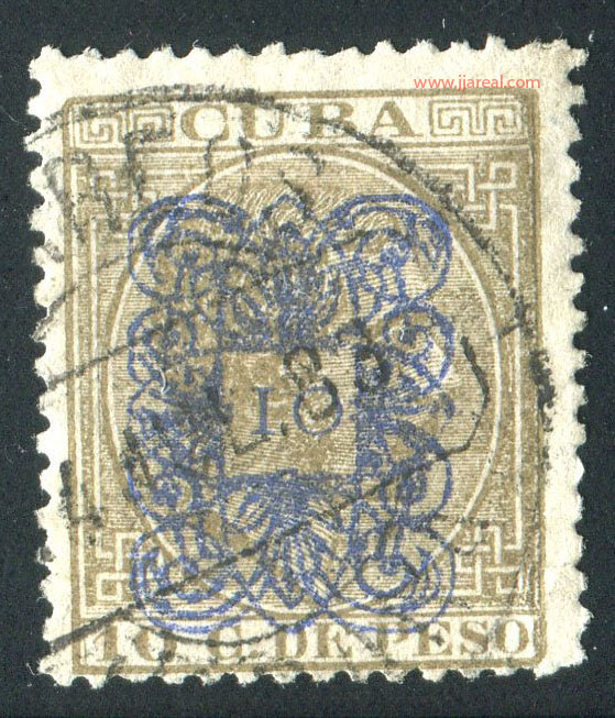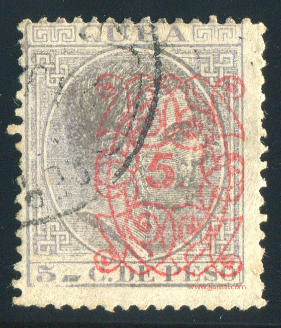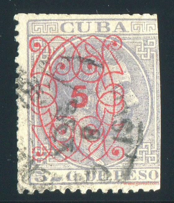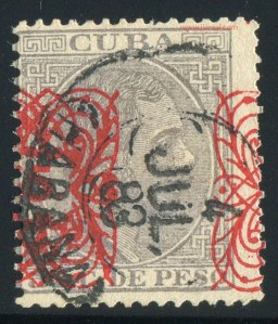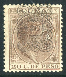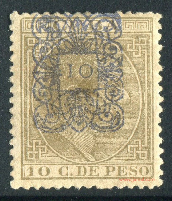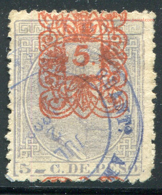 Tres valores (5cs, 10 cs y 20 cs) de los sellos de Alfonso XII de la emisión de 1882 fueron habilitados a mediados del año 1883. Esta habilitación fue decidida tras una sustracción de sellos de correos y otros efectos producida a primeros de abril de 1883 en la Administración de Rentas.