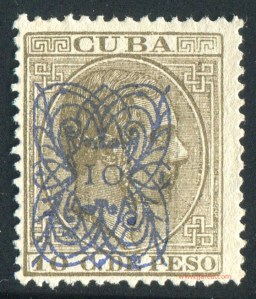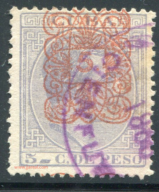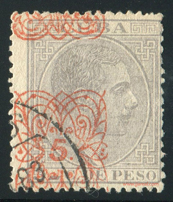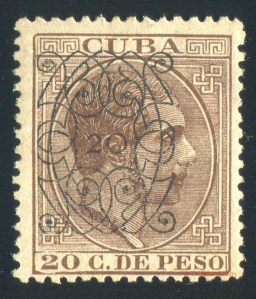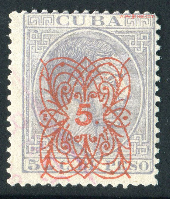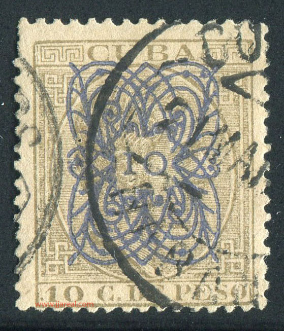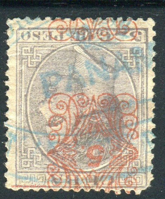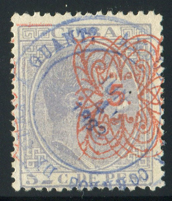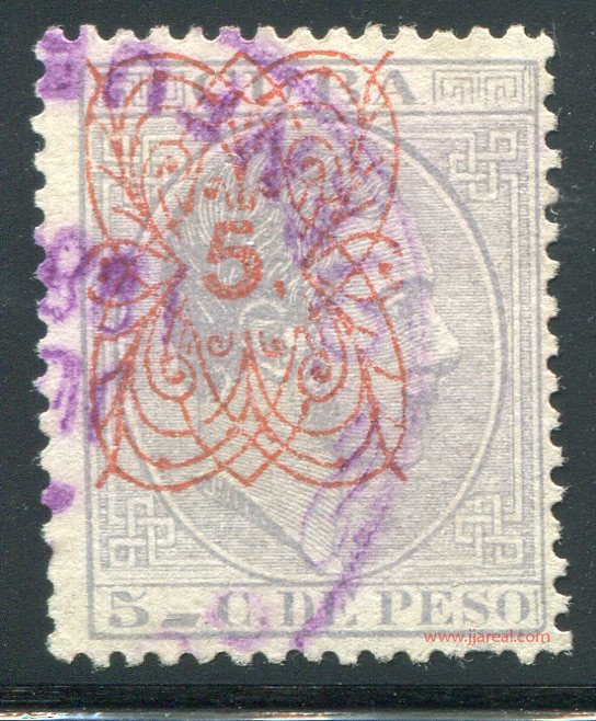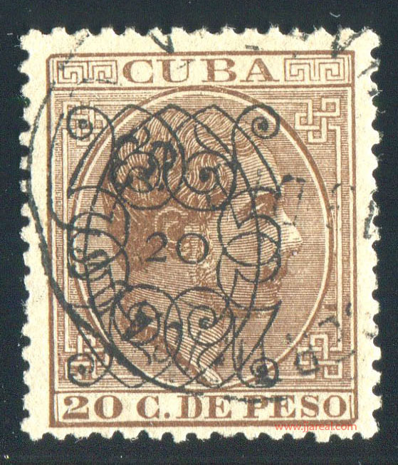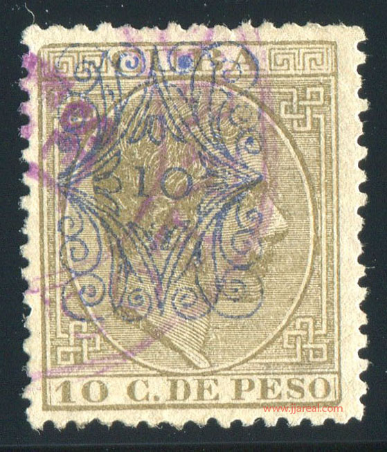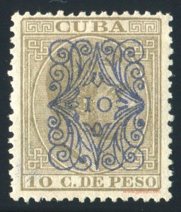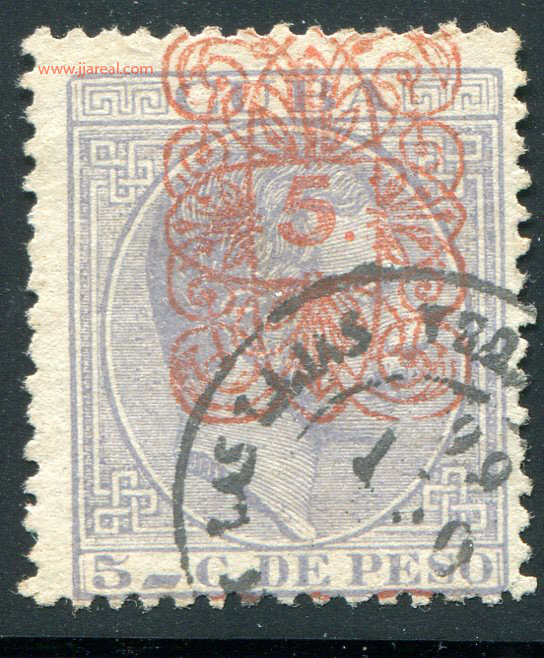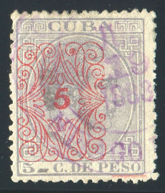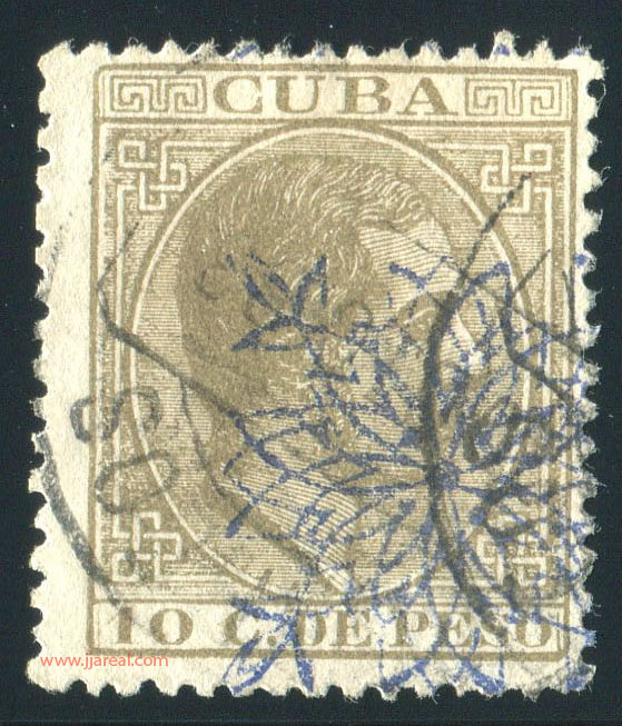 Tres valores (5cs, 10 cs y 20 cs) de los sellos de Alfonso XII de la emisión de 1882 fueron habilitados a mediados del año 1883. Esta habilitación fue decidida tras una sustracción de sellos de correos y otros efectos producida a primeros de abril de 1883 en la Administración de Rentas.