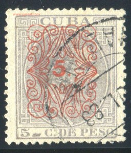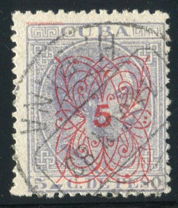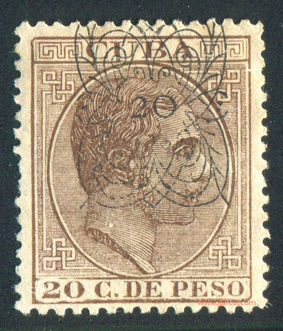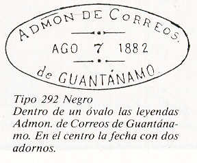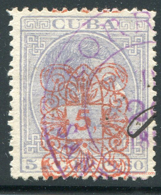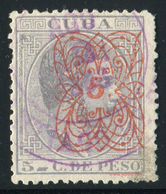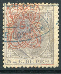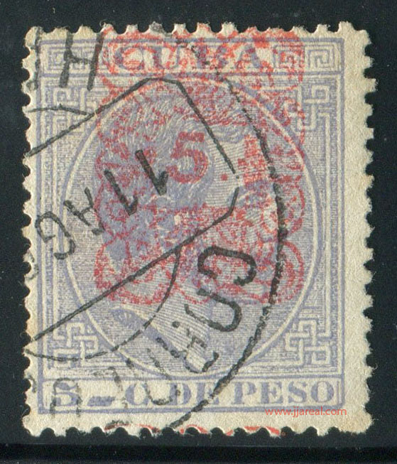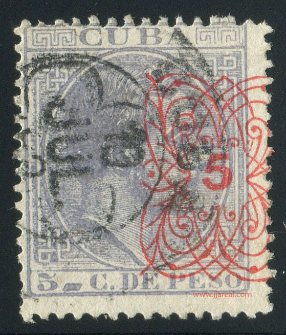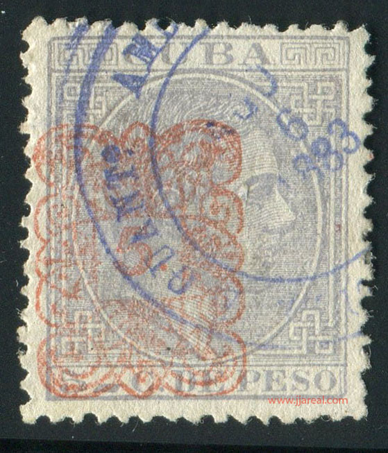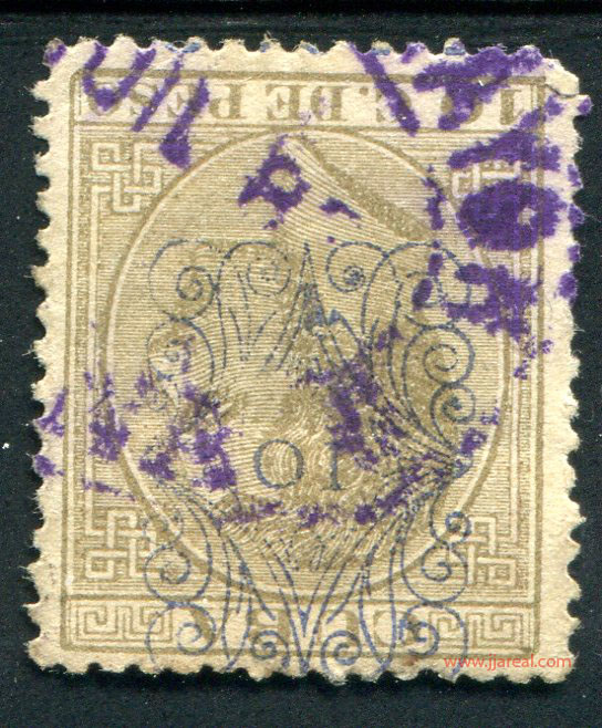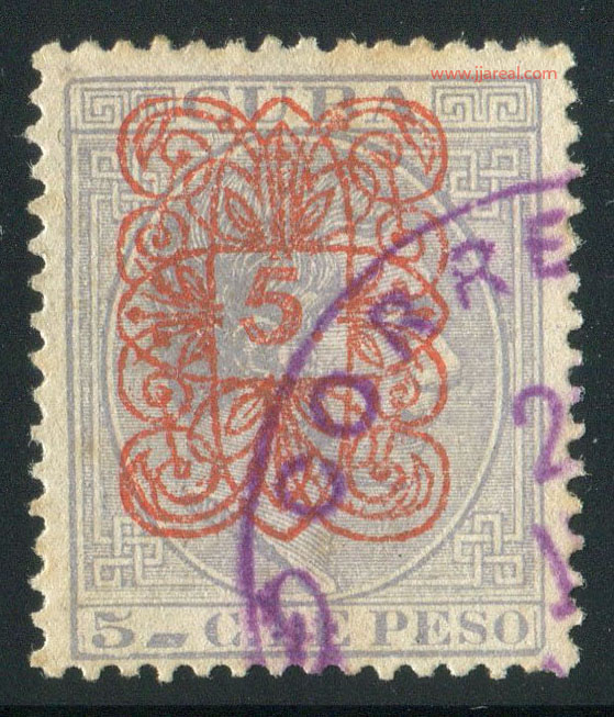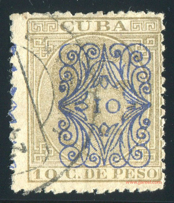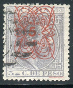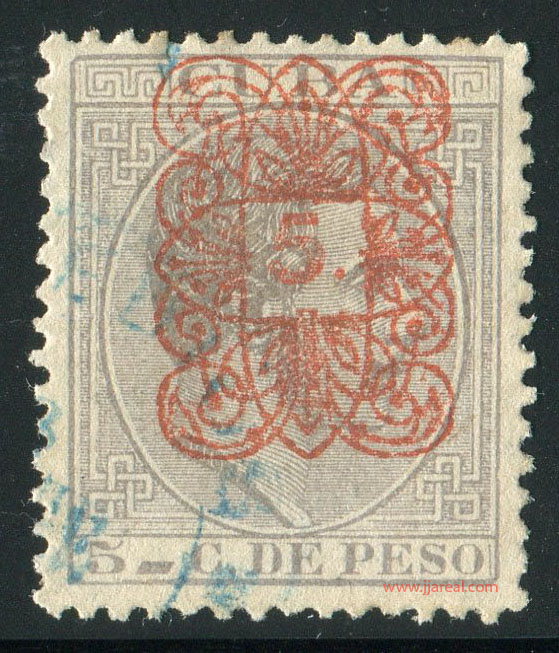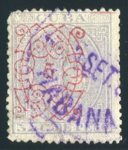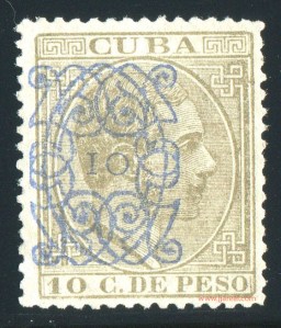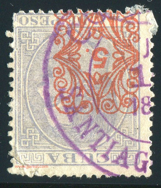 Tres valores (5cs, 10 cs y 20 cs) de los sellos de Alfonso XII de la emisión de 1882 fueron habilitados a mediados del año 1883. Esta habilitación fue decidida tras una sustracción de sellos de correos y otros efectos producida a primeros de abril de 1883 en la Administración de Rentas.