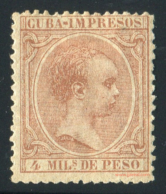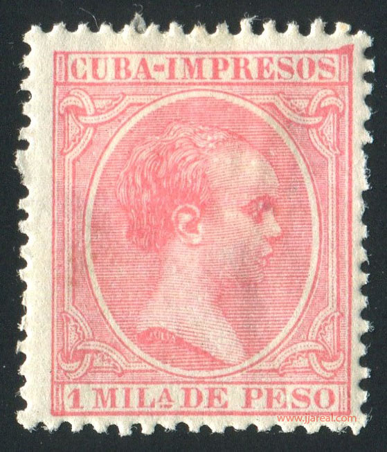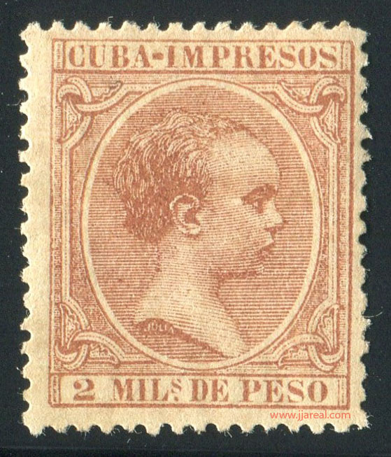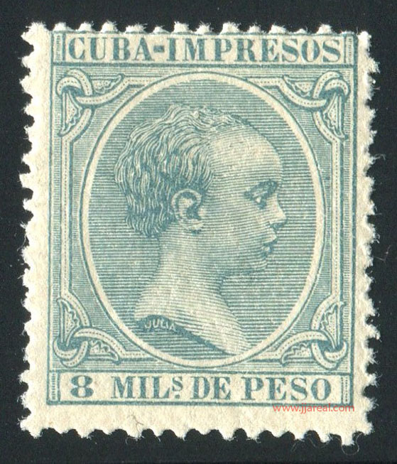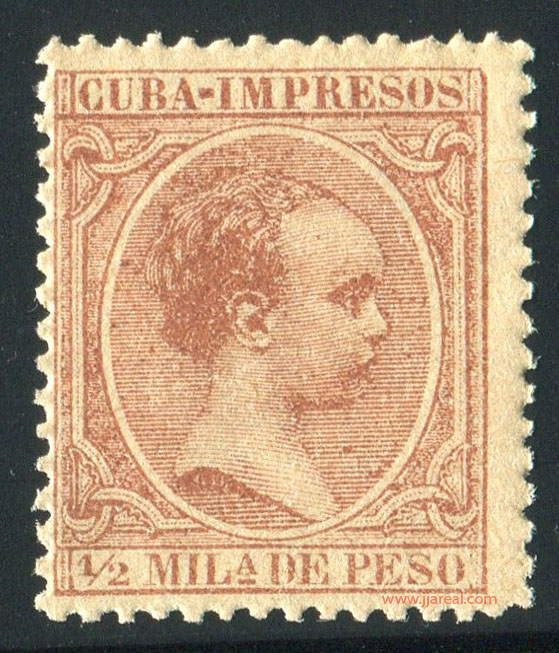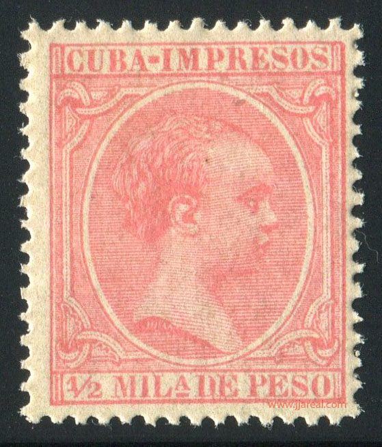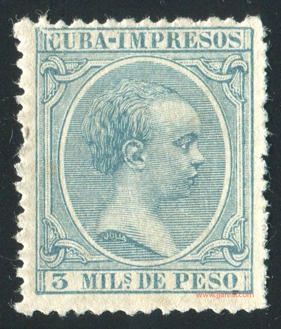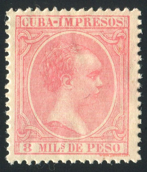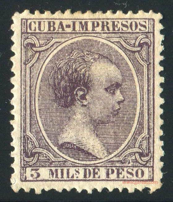 Se emitieron sellos especiales para impresos que presentan el texto CUBA-IMPRESOS en el cartucho superior. En los sellos del correo ordinario el cartucho superior presenta el texto ISLA DE CUBA. En ambos casos el cartucho inferior indicaba el valor del sello en Milésimas de peso o en Centavos de peso.