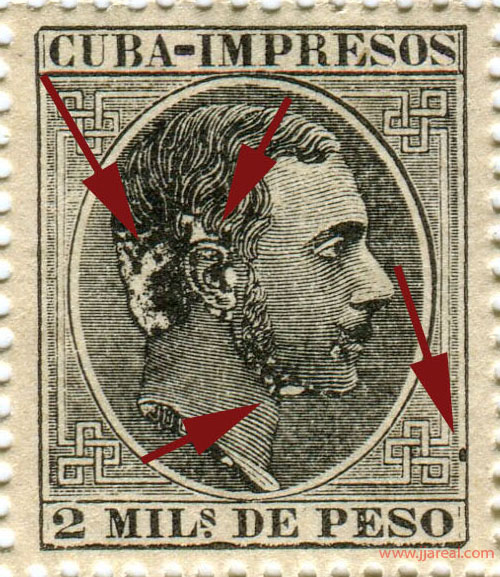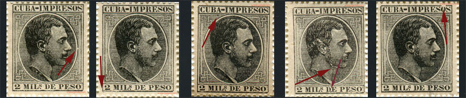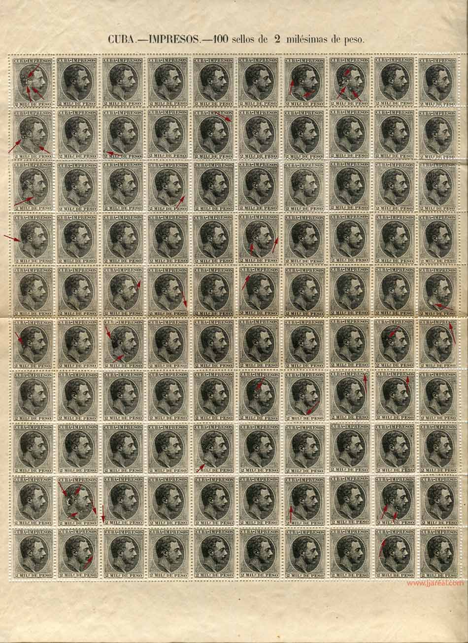 En el año 1888 se pusieron en circulación en Cuba sellos para impresos con los valores de media, una, dos, tres, cuatro y ocho milésimas. Se imprimieron en hojas de 100 sellos compuestas por 10 filas de 10 columnas cada una.
